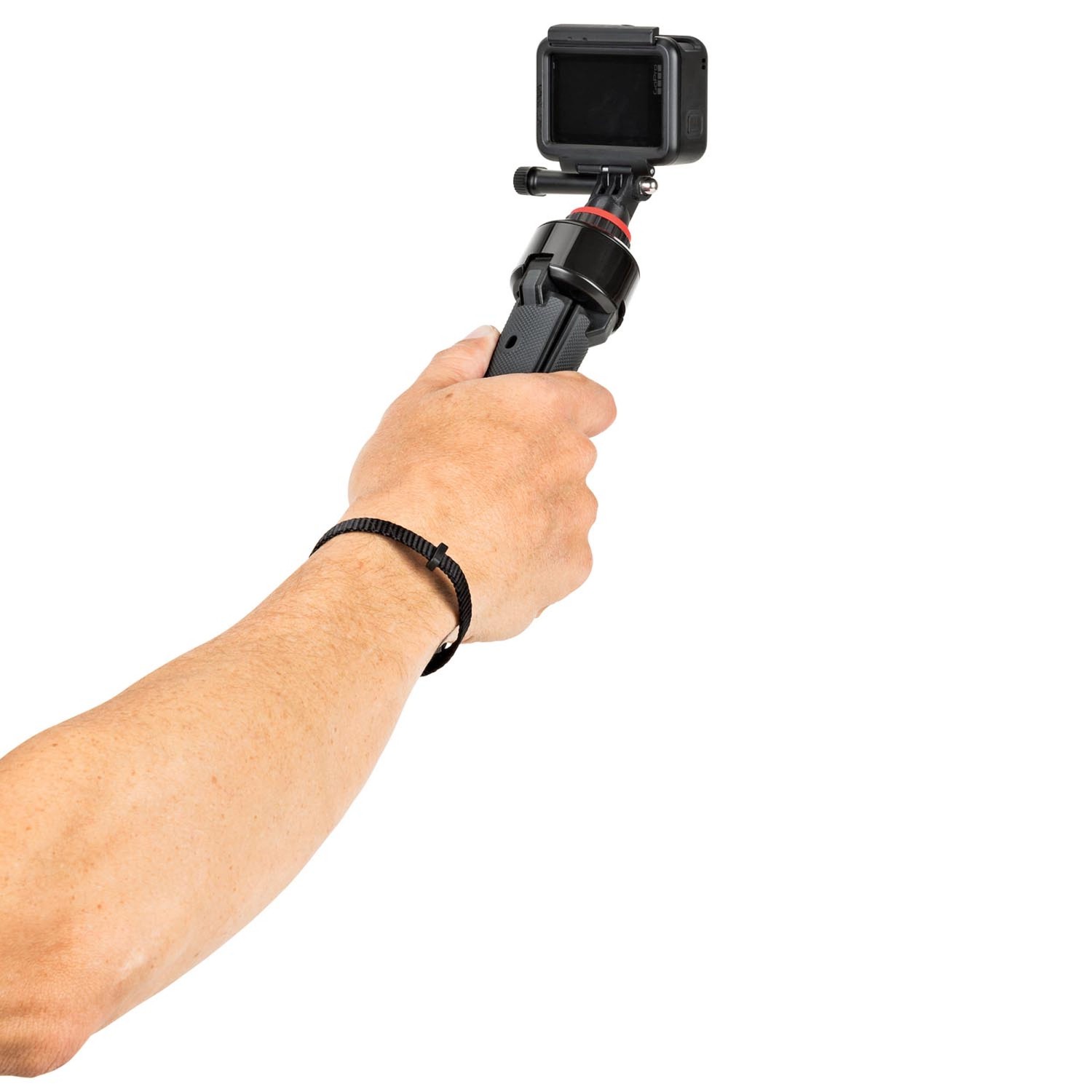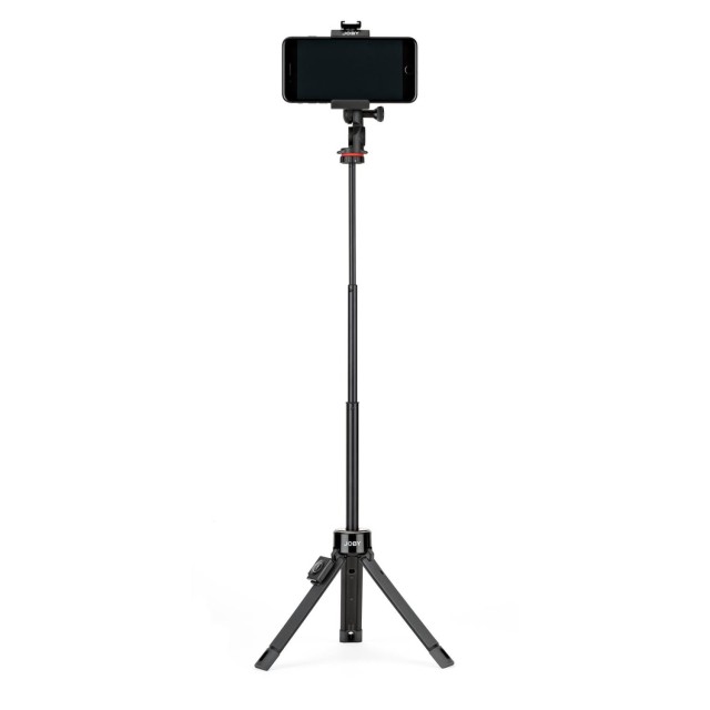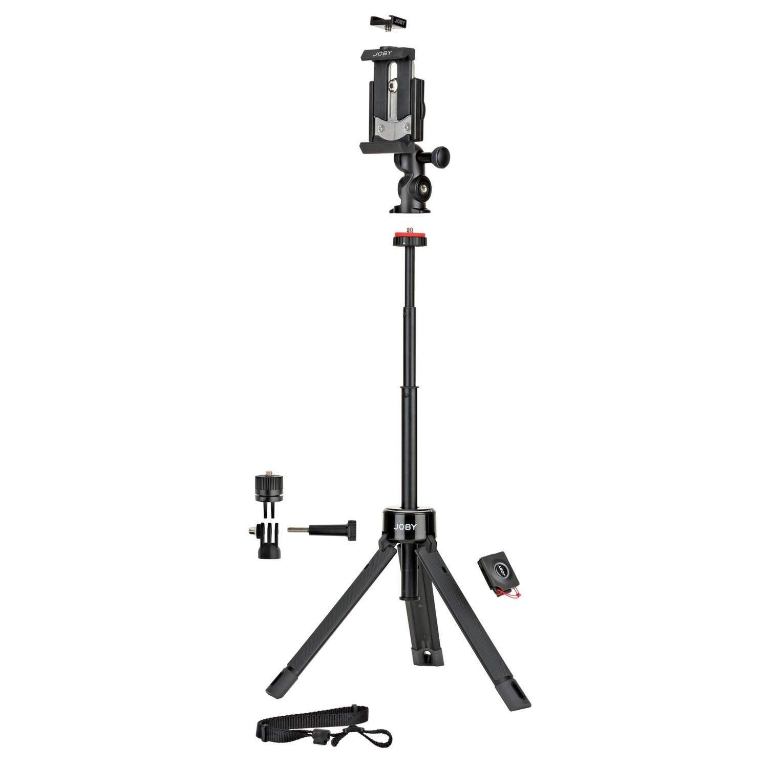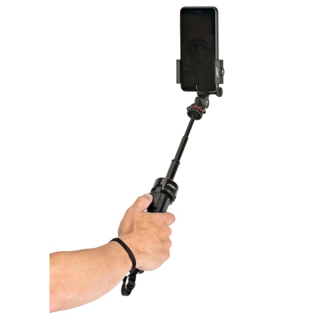 ElJoby GripTight PRO TelePod (Apple) es un trípode telescópico y una barra para vlogs versátil , diseñado para usuarios de iPhone . Ofrece cuatro modos de grabación flexibles y se puede utilizar como empuñadura para sujetarlo con la mano , barra para selfies , soporte elevado o trípode completo . Gracias al disparador remoto Bluetooth Impulse incluido y al soporte metálico tipo «cold shoe» para accesorios , como luces y micrófonos, el es una herramienta ideal para creadores de contenido móvil y vlogueros.