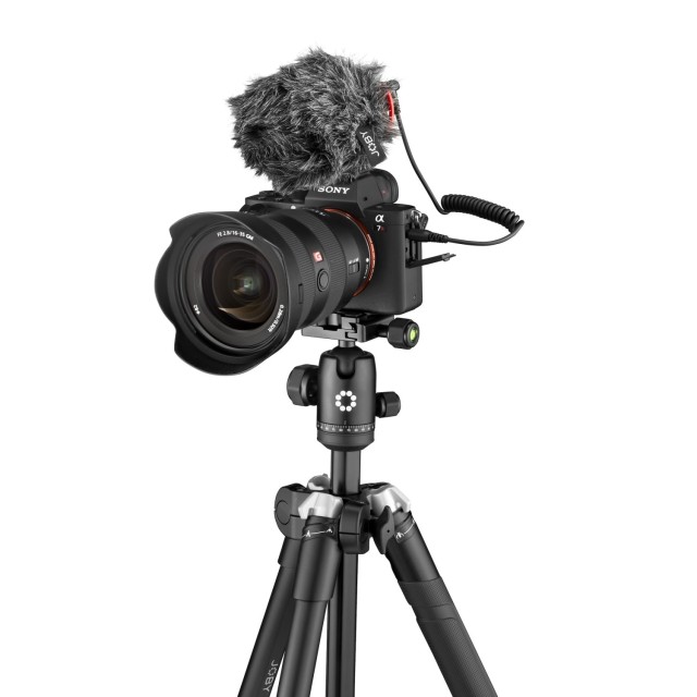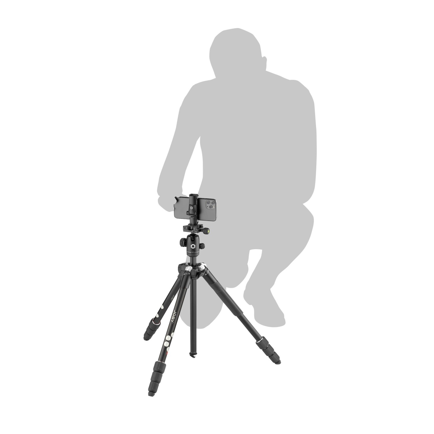 Su capacidad de carga de hasta 8 kg permite soportar tanto cámaras sin espejo ligeras como cámaras réflex más grandes. Las patas del trípode están equipadas con los probados y de alta calidad cierres M-lock, que facilitan el ajuste rápido y cómodo de las 4 secciones de las patas con solo girarlas.