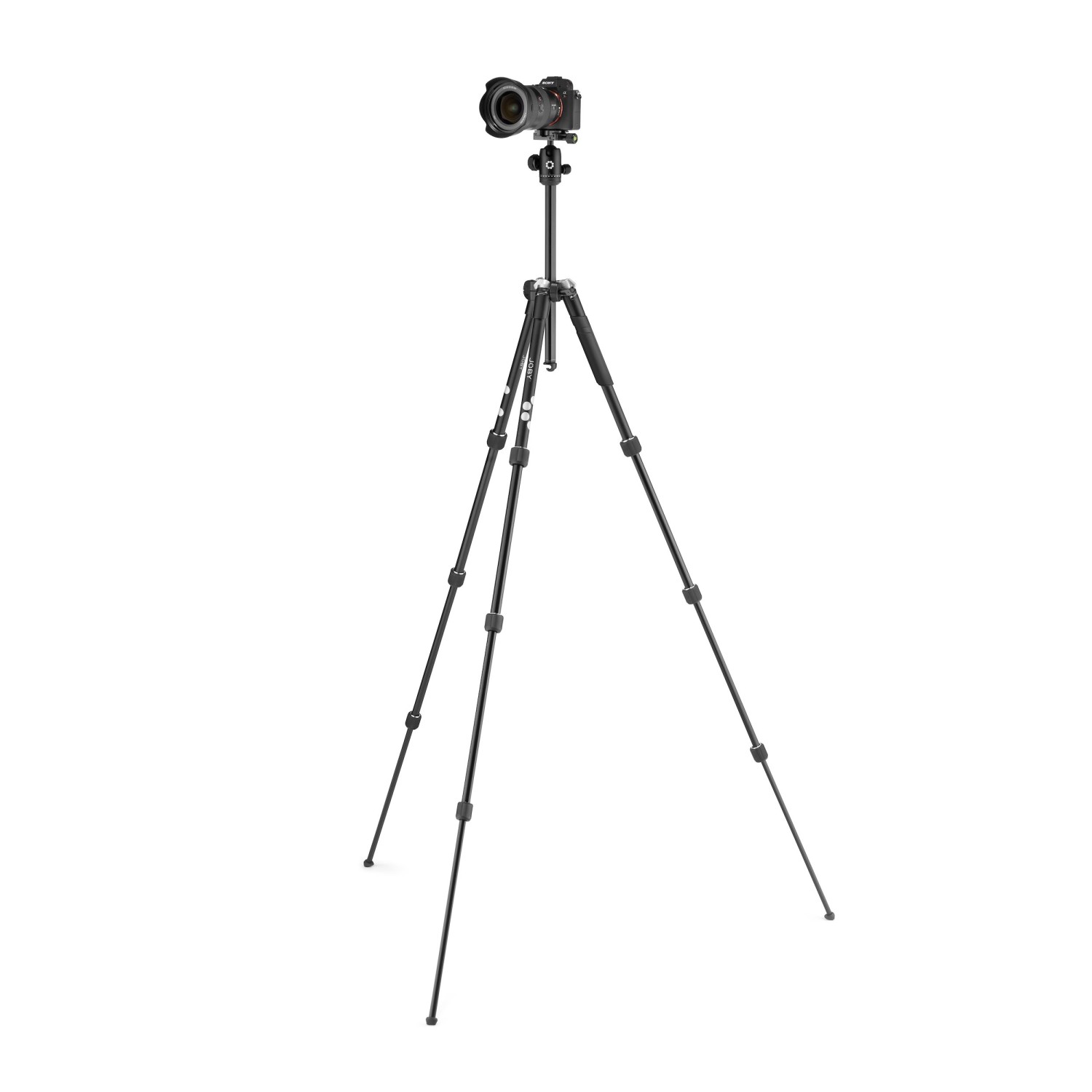Este trípode robusto y resistente está fabricado en aluminio duradero, tiene unas dimensiones compactas y pesa solo 1,69 kg, además de soportar condiciones de trabajo exigentes.