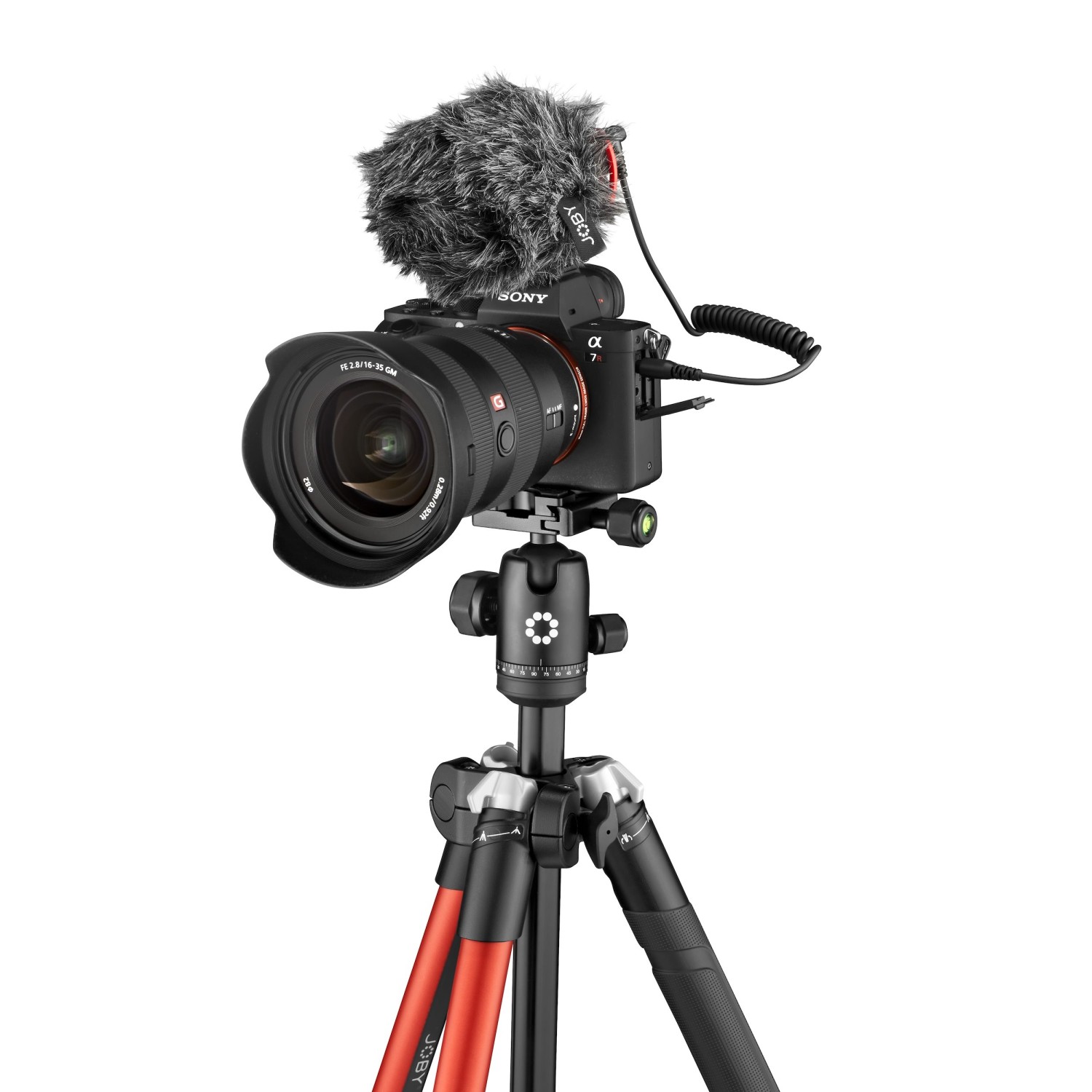 Disponible en aluminio rojo y negro. También se suministra con un soporte para teléfono Joby con un mecanismo de doble bloqueo seguro, que cuenta con dos roscas de 1/4" para fijar el teléfono tanto en horizontal como en vertical. Es compatible con todos los smartphones de 60 a 140 mm de ancho.