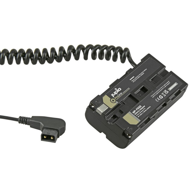 El adaptador de batería NP-F550 (batería ficticia) con conector D-TAP está diseñado para videocámaras compatibles y luces de estudio o de cámara compatibles con las baterías Sony NP-F (montura L). Con este adaptador de batería ficticia, puede conectar una batería con conector V y salida D-Tap a un dispositivo compatible que utilice una batería NP-F (serie L), lo que le permite alimentar el dispositivo durante más tiempo. Simplemente conecte el conector D-Tap a la salida D-Tap de una batería con montura en V o de un cargador D-Tap e instale el adaptador NP-F550 en la cámara.