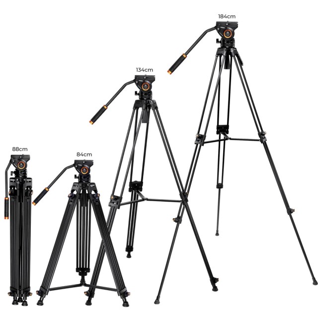 K&F 1.8m Video Tripod Transverse Center Column 8KG with Fluid Head VA18+ VH081