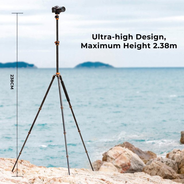 K&F 2.4m Overhead Camera Tripod Transverse Center Column 10kg Load with Detachable Monopod