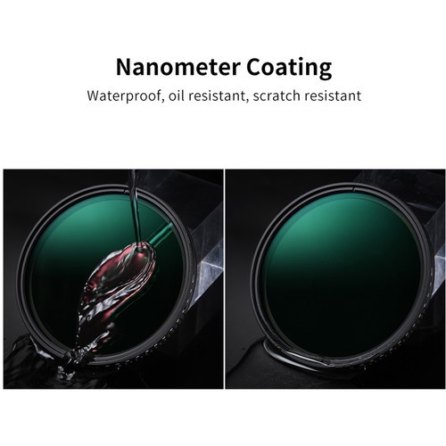 El filtro K&F Concept 37 mm MV36 Slim Variable ND (ND8–ND2000) ofrece una reducción de luz ajustable de 3 a 11 pasos, lo que permite un control preciso de la exposición en condiciones de mucha luz. Este filtro con superficie verde está fabricado con cristal óptico japonés y cuenta con un tratamiento antirreflectante de 24 capas. Es resistente al agua y a los arañazos, y tiene un marco delgado de aluminio de calidad aeronáutica.