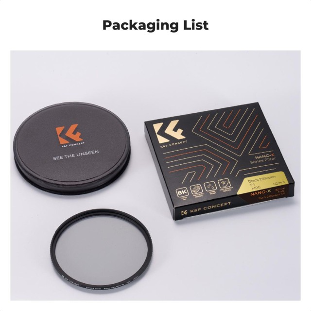 El filtro Black Cine Diffusion está fabricado con cristal óptico de precisión AGC de Japón, provisto de un recubrimiento doble de varias capas para aumentar la transmisión de la luz hasta un 84 %, lo que reduce eficazmente los reflejos de la superficie lisa y no crea viñeteado ni sombras.