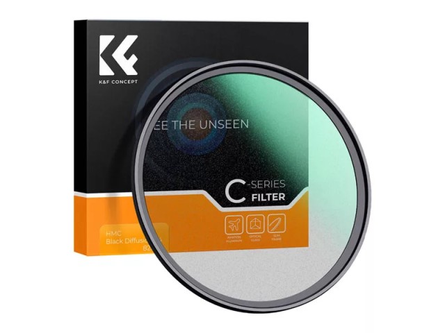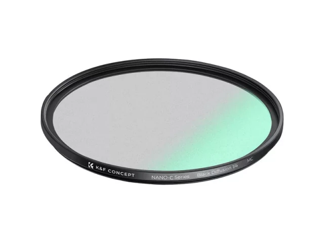 El filtro K&F Concept de 40,5 mm de la serie C Black Mist 1/4 aporta unsutil efecto difusor de estilo cinematográfico al reducir el contraste y los reflejos. Gracias a su marco de aluminio ultradelgado y a su revestimiento verde multicapa, es ideal para retratos, vídeos y fotografía creativa.
