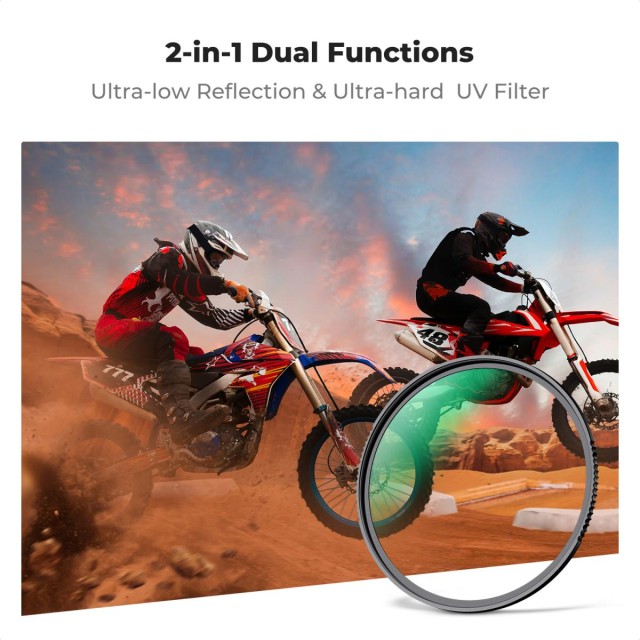 El filtro UV tiene dos funciones: una de ellas es evitar que la radiación UV afecte al CCD y atenuar el tono azulado de las imágenes causado por la radiación UV, lo que garantiza la nitidez y la intensidad del color. Otra función es proteger el objetivo contra daños por golpes, agua, polvo, arañazos, grasa y huellas dactilares. El filtro UV endurecido y resistente a los golpes de KF Concept está fabricado con cristal japonés AGC importado; es resistente a los golpes, impermeable y resistente a los arañazos.