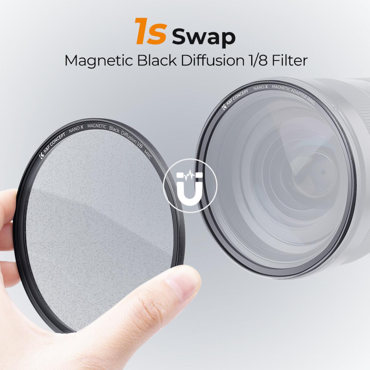 Filtro difusor magnético negro de 49 mm, filtro de 1/8 para efectos especiales HD con revestimiento multicapa, resistente al agua, a los arañazos y a los reflejos, serie Nano-X