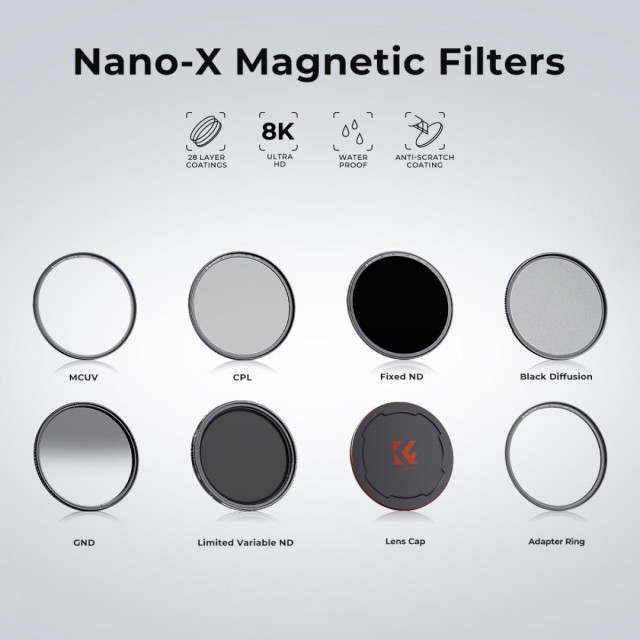 El filtro magnético K&F 49 mm NANO-X CPL ofrece un rendimiento óptico profesional y una comodidad excepcional. Este filtro polarizador circular (CPL) ha sido diseñado para reducir los reflejos de superficies no metálicas, como el agua, el cristal y el follaje, aumentando así la nitidez de la imagen y la intensidad del color para obtener resultados más vivos y de mayor calidad. El cristal óptico pulido por ambas caras garantiza una reproducción precisa de los colores y detalles nítidos, incluso cuando se utiliza con teleobjetivos. Gracias a la avanzada tecnología de nanorrevestimiento, el filtro ofrece una protección resistente —es impermeable y resistente al moho, a los arañazos y a la grasa—, por lo que las manchas, las gotas de agua y el aceite se pueden limpiar fácilmente sin afectar a la calidad de la imagen. El sistema de fijación magnética permite una instalación y desmontaje instantáneos en un segundo, lo que es significativamente más rápido que con los filtros tradicionales con rosca. Su marco ultradelgado mecanizado con CNC evita la viñetación en objetivos gran angulares, mientras que la tapa magnética para el objetivo incluida, de calidad aeronáutica, ofrece doble compatibilidad con fijación magnética y roscada.