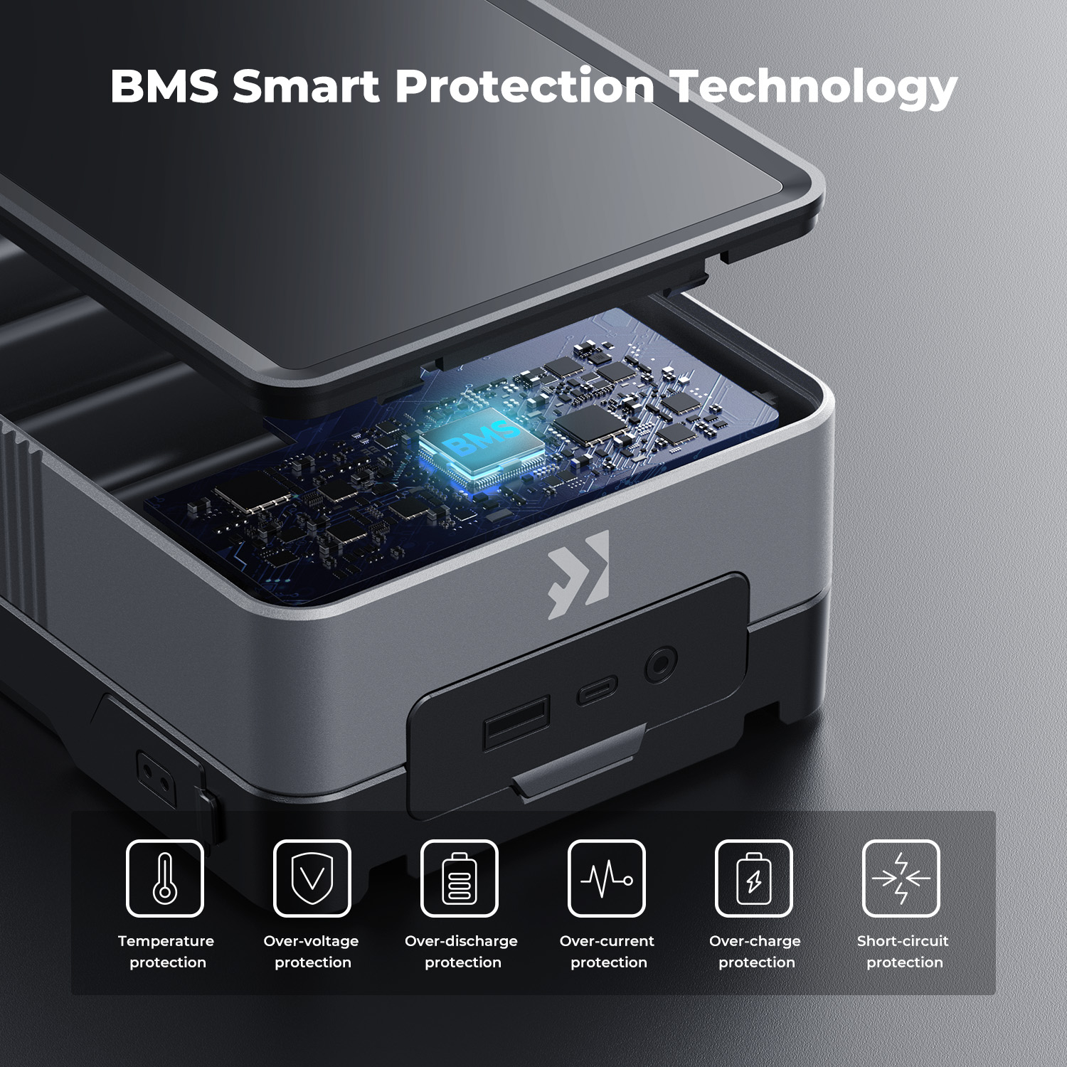 - Seguro y fiable, utiliza baterías de marca de alta calidad; el sistema inteligente BMS proporciona varias protecciones, como sobrecorriente, cortocircuito, sobrecalentamiento y sobretensión.