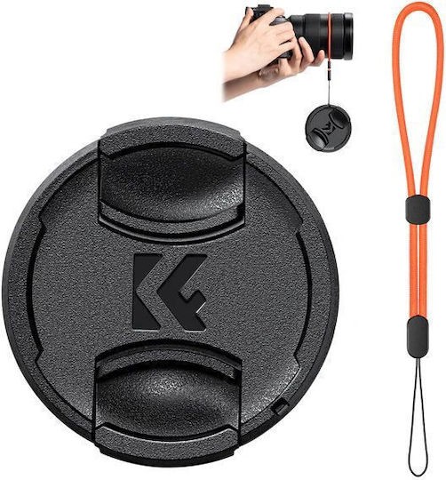 Tapa para objetivo K&F Concept de 52 mm con el logotipo de KF y cordón antiextravío: diseño a presión con fijación central, sin resorte, fabricada en ABS, empaquetada individualmente en una bolsa de OPP para protegerla del polvo y los arañazos.