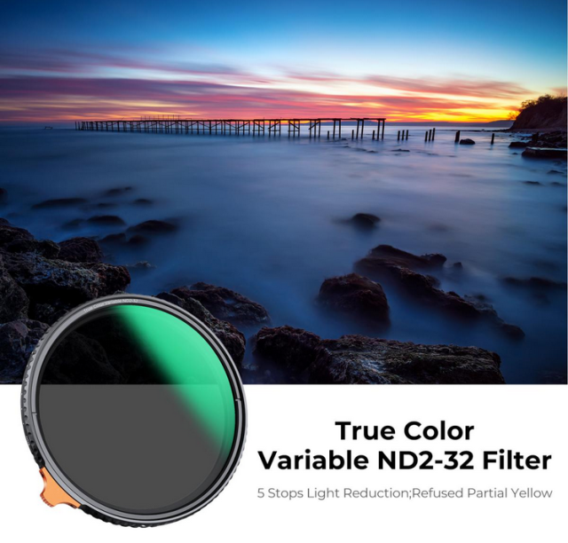 K&F 52MM Variable ND Filter True Color ND2-ND32 with 28 Layers of Anti-reflection Green Film Waterpr