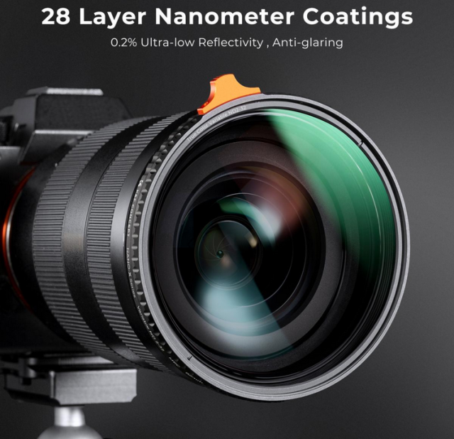 • Cristal óptico de primera clase: este filtro está fabricado con cristal óptico japonés de alta calidad con un nanorrevestimiento de 28 capas en ambos lados; es resistente al agua, al aceite y a los arañazos, fácil de limpiar y no se empaña a largo plazo.