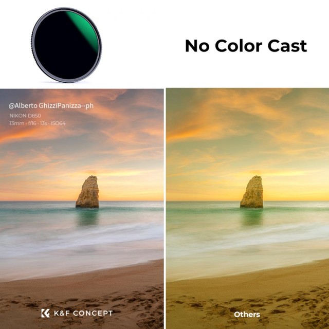 El filtro K&F 52 mm XN26 Nano-X Fixed ND1000 ofrece una reducción de luz de 10 pasos para fotografías de larga exposición, conserva los colores con fidelidad gracias a su revestimiento antirreflectante de 28 capas, un marco de aluminio ultrafino y una estructura resistente al agua, al aceite y a los arañazos.