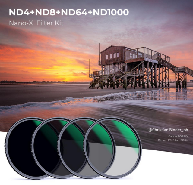 Un completo juego de filtros ND diseñado para controlar la exposición a la luz y mejorar la fotografía de paisajes, que incluye filtros resistentes de varias capas.