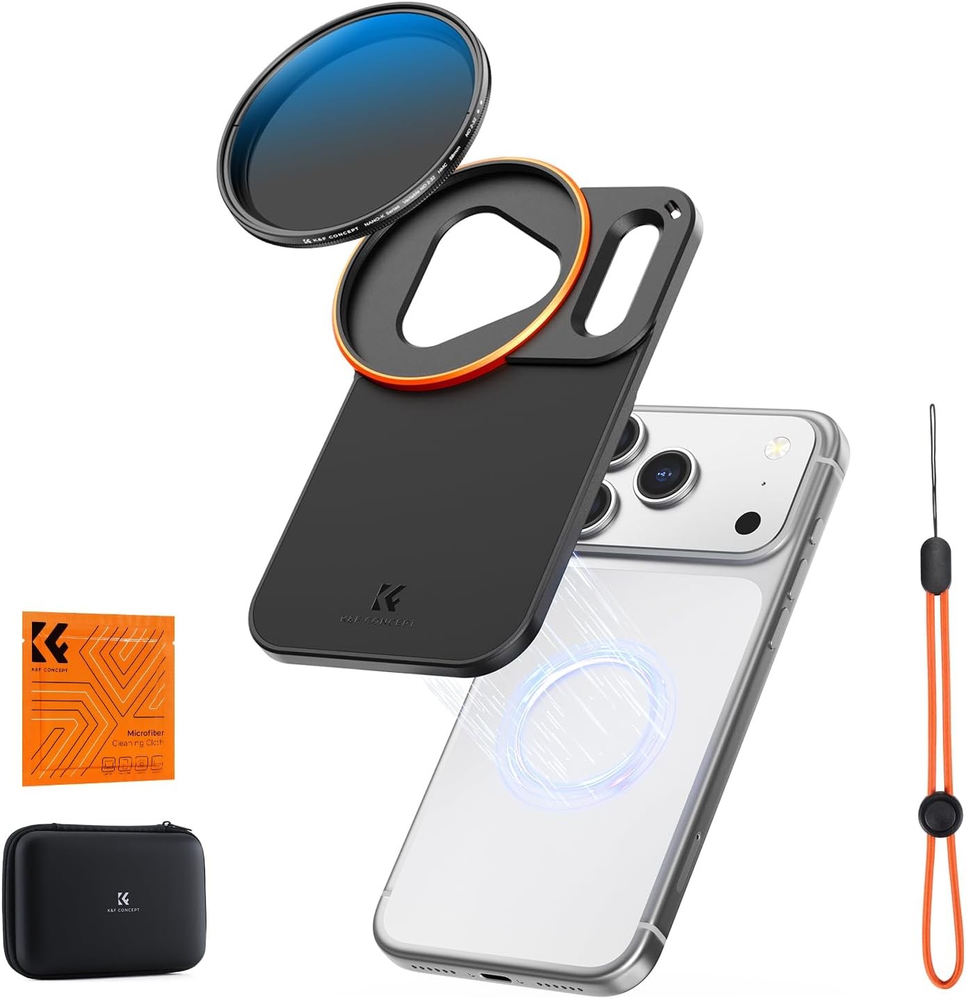 El soporte magnético de doble cara atornillable K&F de 58 mm para el iPhone 17 Pro Max ofrece una fijación precisa, potentes imanes de doble cara y es compatible con filtros de 58 mm de diámetro, incluido el filtro VND incluido. Garantiza una fotografía móvil estable, segura y versátil con una protección completa y un almacenamiento port…