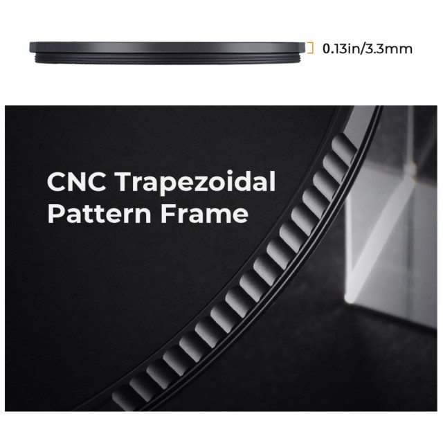 El filtro K&F Concept 62 mm Nano-X Black Mist 1/2 suaviza el contraste y difumina las luces para conseguir un aspecto cinematográfico. Está fabricado con cristal óptico japonés, tiene una transmisión del 79 %, recubrimientos nanométricos multicapa y un marco ultradelgado que evita el viñeteado.