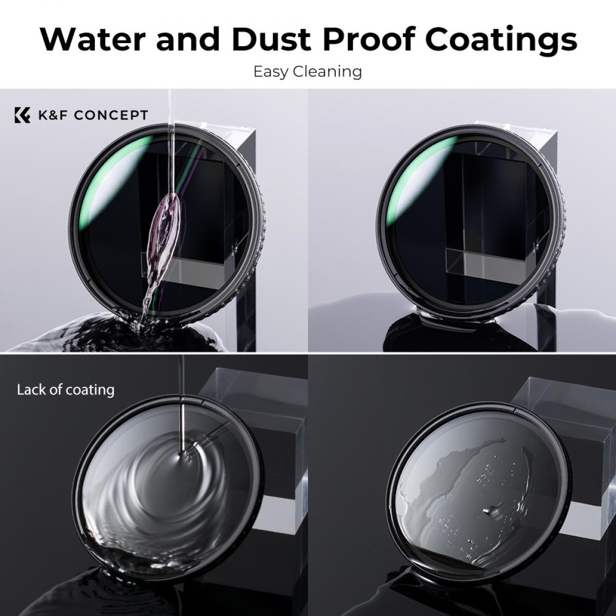 Filtro ND variable K&F Concept 62 mm Nano-X (ND32–ND512) garantiza una reducción suave y ajustable de la intensidad de la luz sin interferencias X-cross, está fabricado con cristal óptico de primera calidad y cuenta con un resistente recubrimiento nano de 28 capas, todo ello en un fino marco de aluminio que evita el viñeteado y garantiza exposiciones largas impecables y efectos de movimiento cinematográficos.