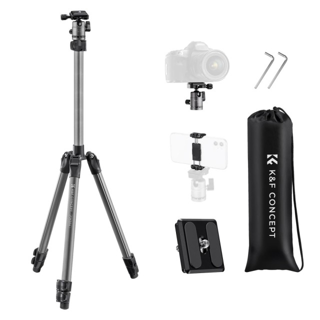 K&F 66 "/168cm Camera Tripod,Lightweight and Compact Aluminum Super Portable DSLR Tripod