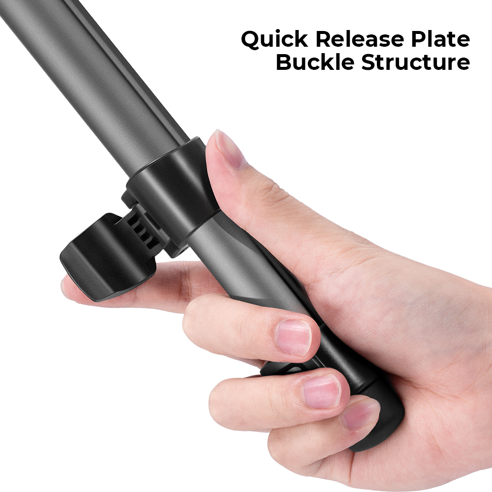 • * 【Mayor compatibilidad】Este trípode para cámaras con rosca estándar de 1/4" se puede utilizar con la mayoría de las placas de fijación rápida Arca-Swiss; El tornillo de 1/4" es adecuado para la mayoría de cámaras, cámaras réflex digitales, proyectores y telescopios, etc. También puedes utilizar tu teléfono móvil para hacer selfies durante tus viajes, retransmisiones en directo y time-lapse mediante el clip para teléfono móvil.