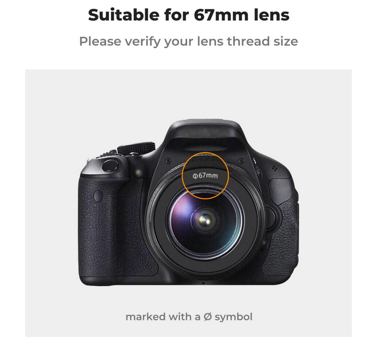 La tapa para objetivo de cámara K&F de 67 mm está diseñada para mejorar tus fotografías, ya que evita las interferencias de luz no deseadas y mejora la calidad de la imagen al fotografiar a contraluz, con luz lateral o con flash. Esta tapa está fabricada con un material compuesto de alta calidad y ofrece una protección resistente para su objetivo; es resistente a caídas, golpes y desgaste. Está fabricada siguiendo exactamente las especificaciones de la rosca del objetivo, lo que garantiza que no se produzcan fugas de luz ni viñeteado, y que la tapa se ajuste de forma segura sin ruidos ni holguras. El paquete también incluye un paño de limpieza de microfibra envasado al vacío, que mantiene el objetivo y los filtros limpios sin dejar polvo ni causar daños.