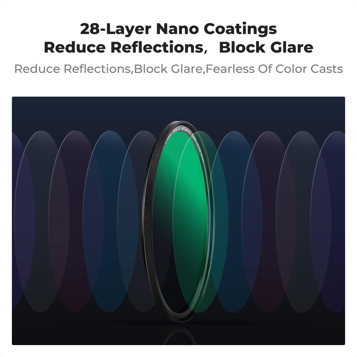 El juego de filtros magnéticos K&F Concept de 67 mm incluye los filtros GND8, ND8, ND64 y ND1000, además de un anillo adaptador magnético que permite cambiarlos en tan solo 1 segundo. Los filtros están fabricados en cristal de alta calidad con revestimiento multicapa AGC y presentan un diseño ultradelgado sin viñeteado, lo que los hace ideales para la fotografía de paisajes y las exposiciones prolongadas.