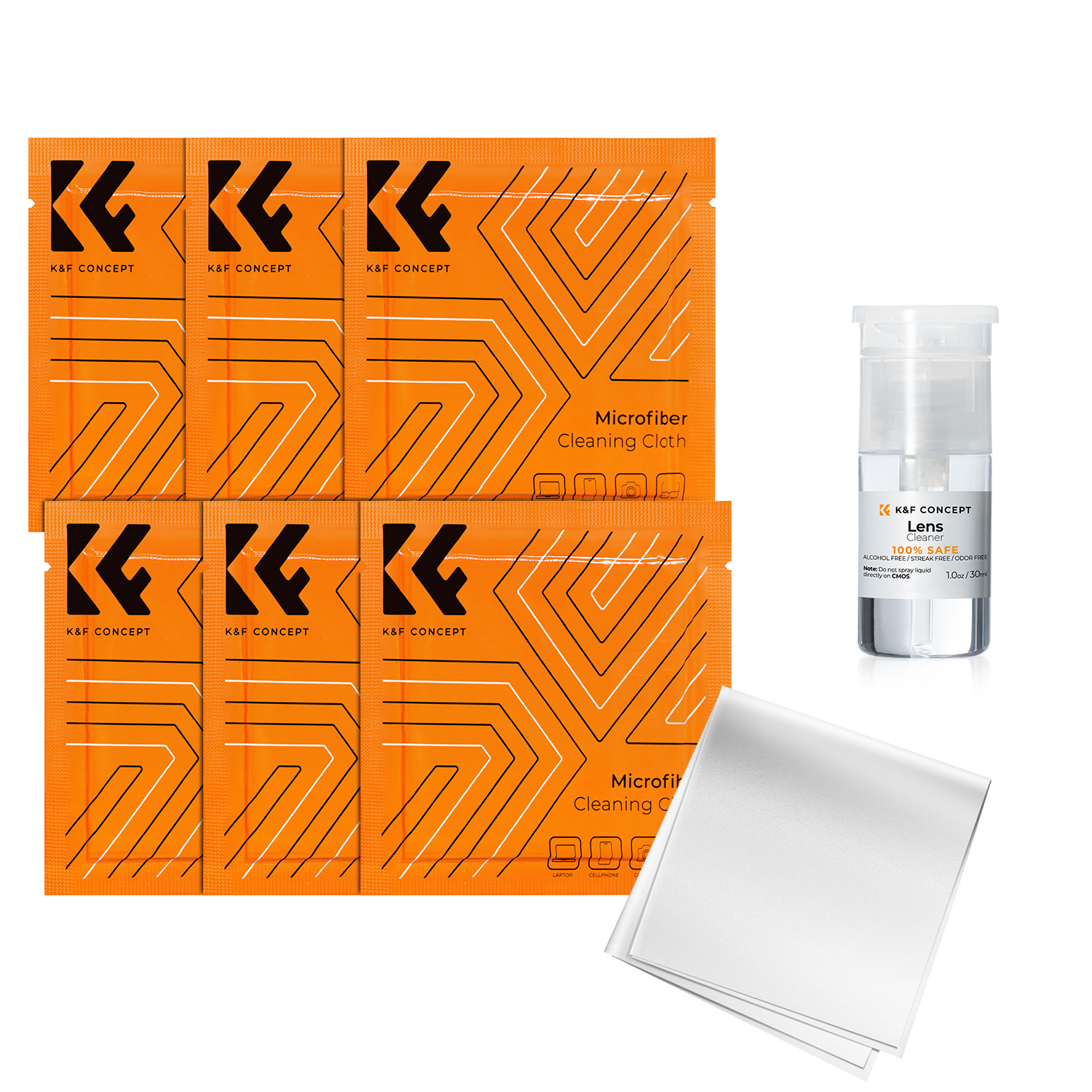 K&F 7 in 1 Cleaning kit, 10*10cm While Vacuum Cleaning Cloth*6 + 30ml Cleaning Liquid