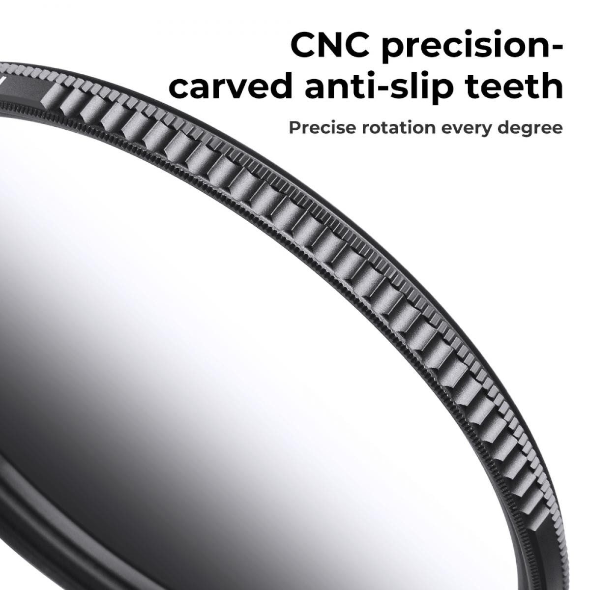 El marco con diseño trapezoidal CNC garantiza un agarre seguro para una rotación fluida y una instalación o desmontaje cómodos. Los avanzados recubrimientos Nano-X hacen que el filtro sea resistente al moho, al agua, a los arañazos y a la grasa, al tiempo que mantienen la claridad óptica. Su marco ultradelgado de 5,3 mm de aluminio de calidad aeronáutica elimina la viñetación en objetivos gran angulares y teleobjetivos, mientras que el recubrimiento degradado de alta tecnología garantiza un color uniforme y un atenuado preciso. Este filtro, ideal para la fotografía profesional de paisajes, garantiza imágenes equilibradas y de alta calidad incluso en condiciones de iluminación difíciles.