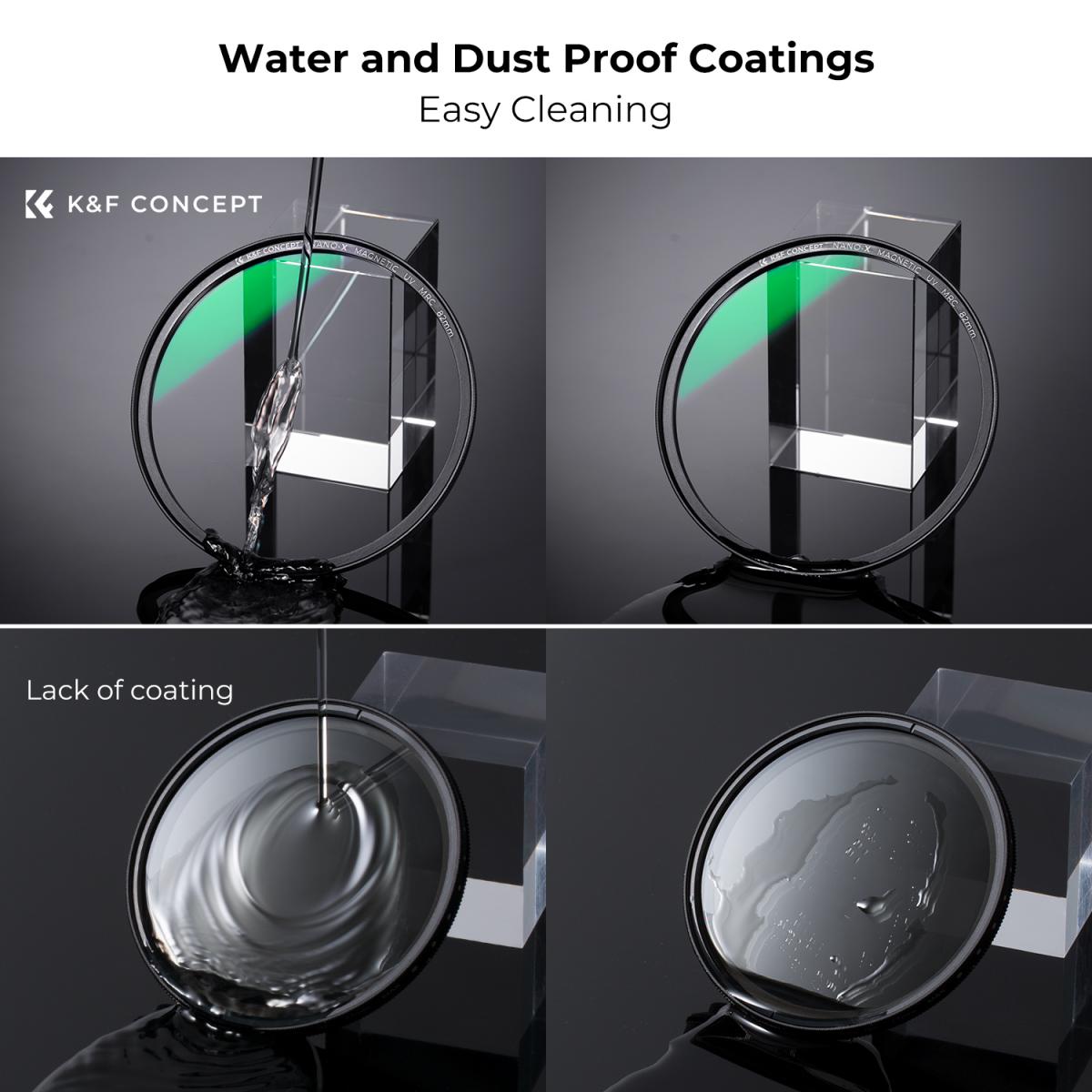 A diferencia del filtro roscado, que hay que girar, el filtro magnético se puede «instalar y desmontar rápidamente»; el filtro magnético se instala en un segundo, mientras que el filtro roscado requiere al menos 6 segundos. La nanocapa de 28 capas con lámina verde antirreflectante, capaz de reducir eficazmente la reflectividad de la superficie del filtro y filtrar al mismo tiempo la radiación ultravioleta, mejora notablemente la transmisión de la luz y equilibra el color; además, es resistente a los arañazos y al aceite.