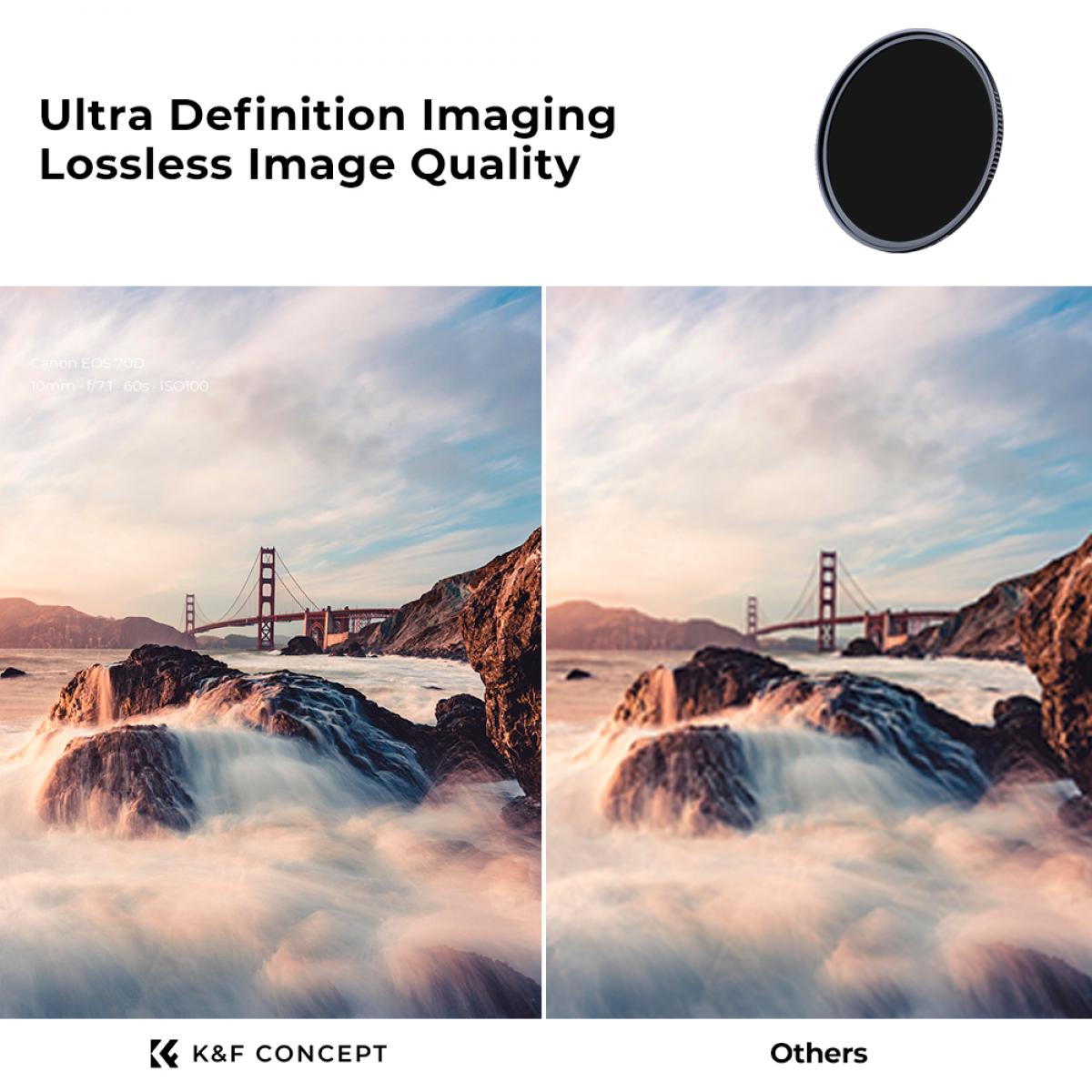 * 【Sin viñeteado】Cada marco del filtro ND está fabricado en aluminio aeronáutico; el diseño superdelgado del marco de 3,3 mm evita el viñeteado incluso en teleobjetivos, y el diseño antideslizante CNC le ayudará a enroscar y desenroscar el filtro fácilmente.