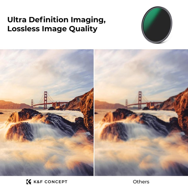El kit profesional de filtros ND K&F de 82 mm, compuesto por tres piezas, incluye filtros ND8, ND64 y ND1000 fabricados con cristal óptico japonés de primera calidad y con un avanzado tratamiento nano de 24 capas que garantiza una excelente neutralidad cromática y un rendimiento óptimo en exposiciones prolongadas. El paquete incluye un estuche impermeable y tres paños de limpieza envueltos individualmente.