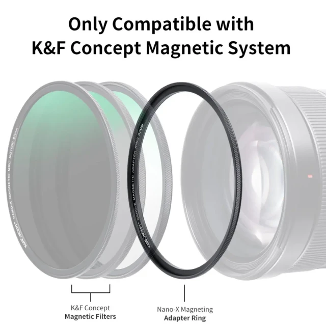 Tenga en cuenta que este adaptador solo es compatible con los filtros magnéticos de 82 mm de K&F Concept y no funciona con filtros o adaptadores no magnéticos.
