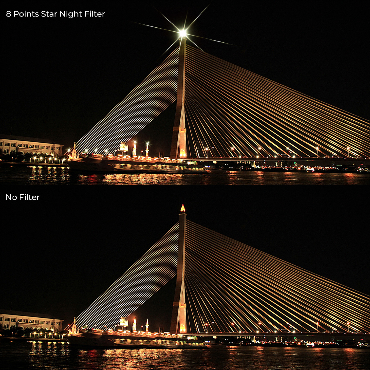 La función del espejo estelar ajustable es ofrecer a los usuarios más opciones personalizadas y creativas. Los filtros de luz estelar tradicionales suelen tener un único efecto de luz estelar fijo, que no puede satisfacer las necesidades de todos los usuarios. El espejo de luz estelar ajustable permite a los usuarios configurar libremente el efecto de luz estelar de cuatro y ocho líneas en el filtro según sus preferencias y necesidades creativas.