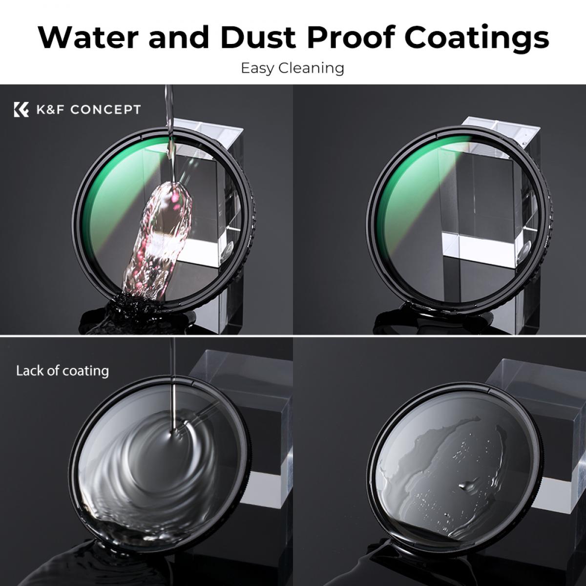El filtro ND de 95 mm de K&F, fabricado con cristal óptico profesional, reduce la entrada de luz sin afectar al equilibrio de colores. Gracias a su tecnología de vanguardia, elimina el problema de la «X» que suele aparecer en los objetivos gran angulares y los filtros ND variables. Gracias a su capa de recubrimiento nano, que lo hace resistente al agua, a los arañazos y antirreflectante, este filtro protege su objetivo del aceite, las huellas dactilares y los arañazos. Su diseño profesional incluye un borde ultrafino que evita la viñetación y un marco resistente de aluminio aeronáutico. Para garantizar la compatibilidad con tu objetivo de 95 mm, comprueba el tamaño de la rosca de tu cámara, que suele estar indicado en el tubo del objetivo.