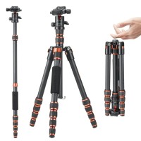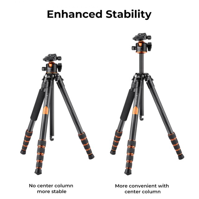 En comparación con los trípodes tradicionales para cámaras, el trípode K&F Concept A255C2+BH-35L está equipado con una columna central especial que reduce el volumen del trípode en un 30 %. Se transporta fácilmente con una sola mano.