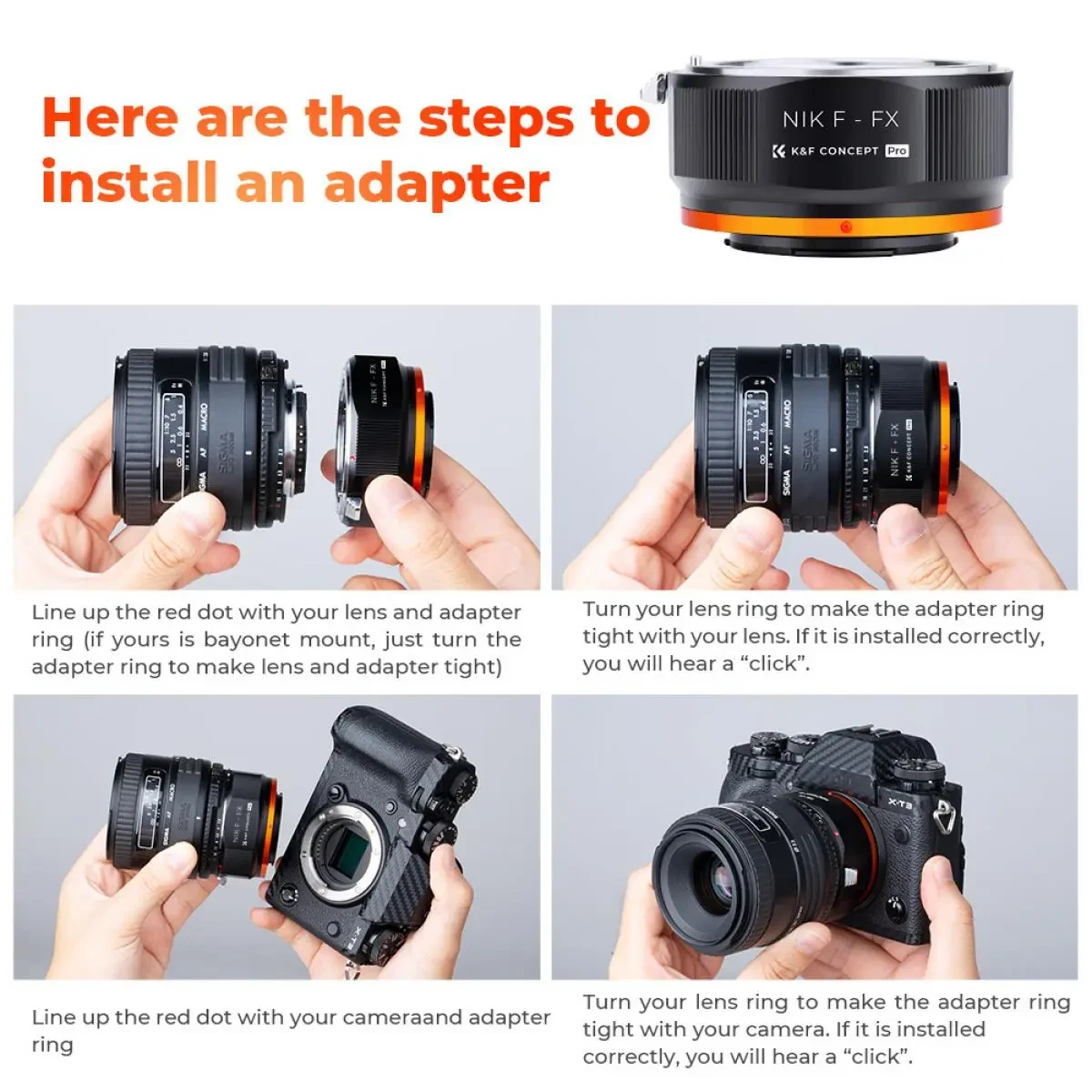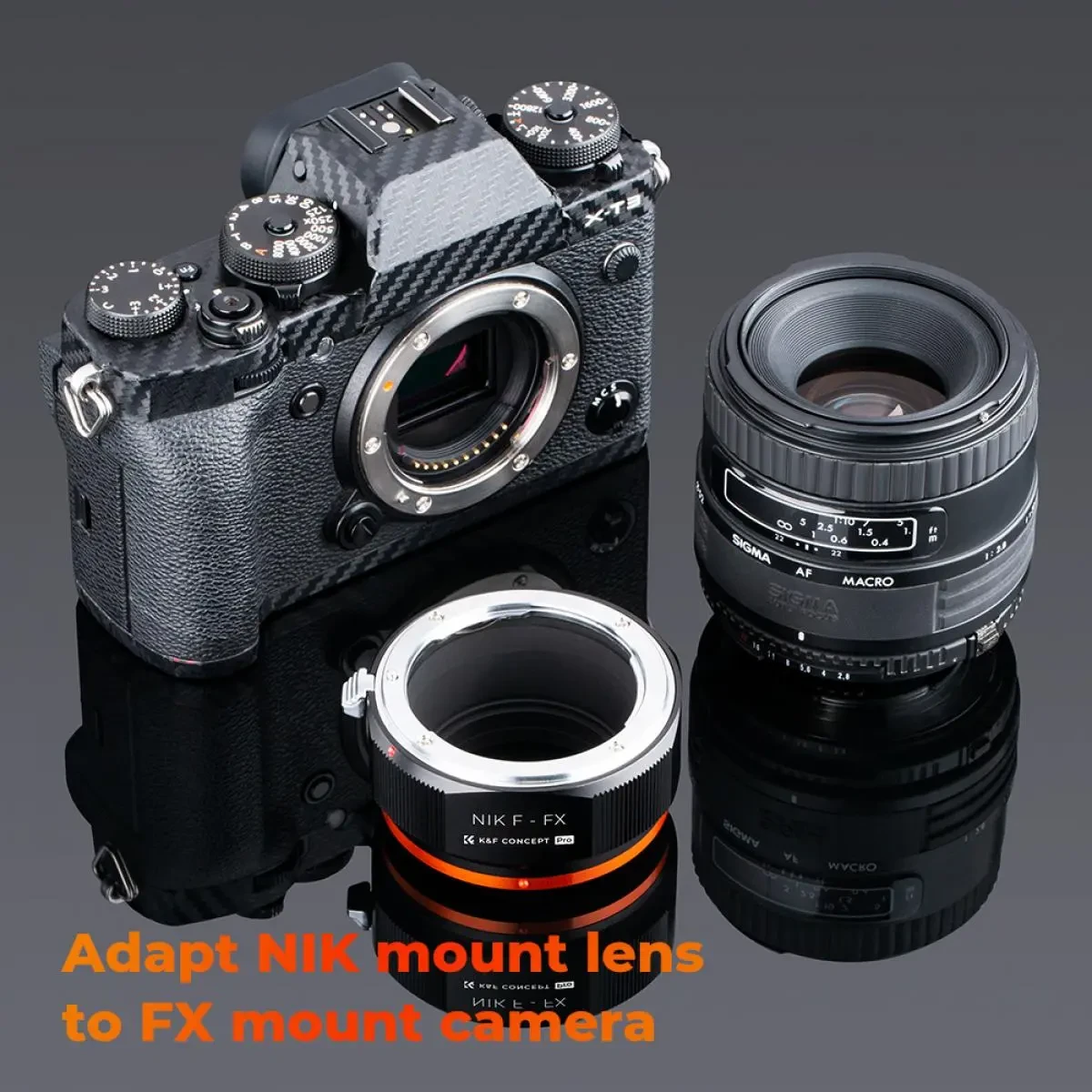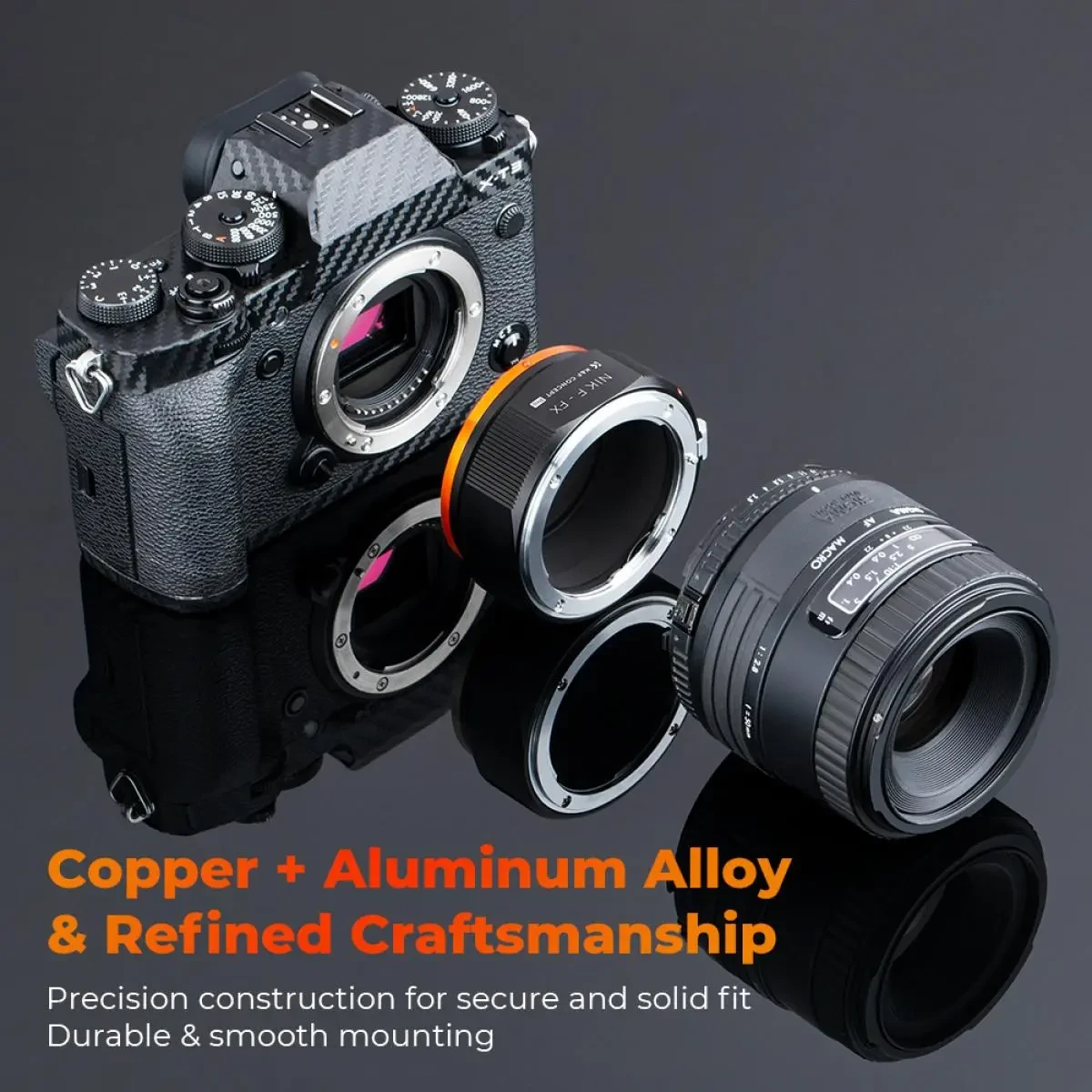 Adaptador de montura Nikon AI/F para cámaras sin espejo Fujifilm de la serie X con montura FX y acabado mate, compatible con las cámaras Fuji XT2, XT20, XE3, XT1 y X-T2; adaptador de montura K&F Concept.