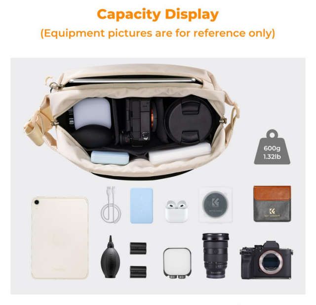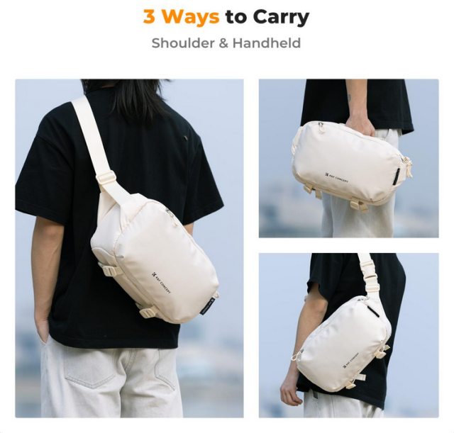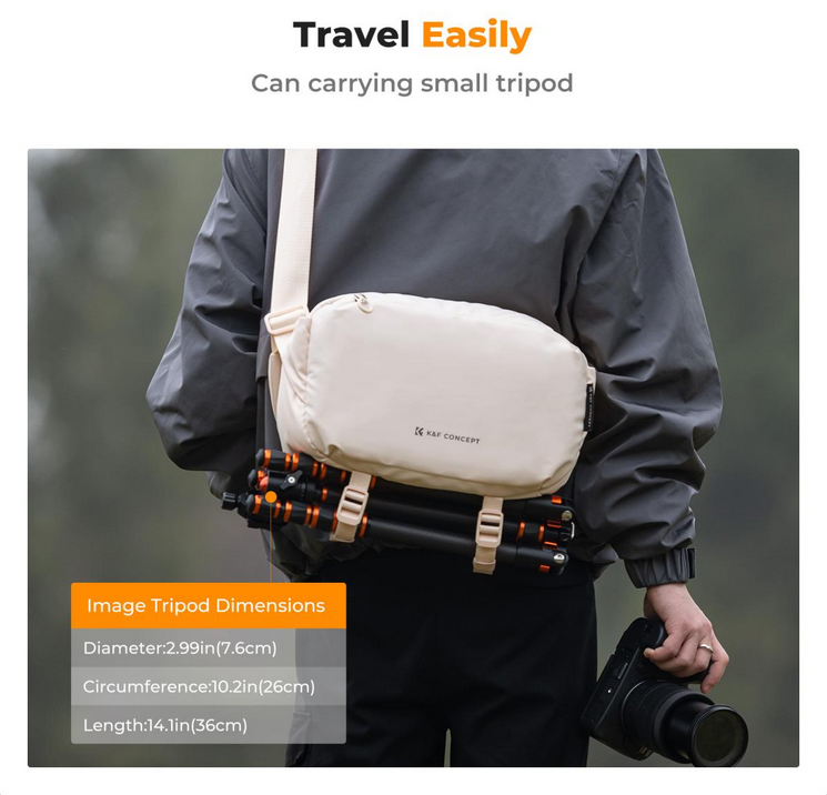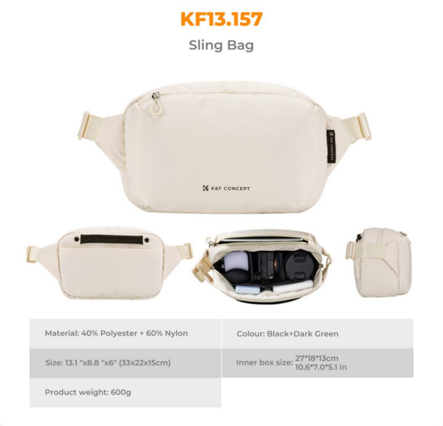 La bolsa fotográfica K&F Concept Alpha Sling 10L está pensada para fotógrafos que buscan versatilidad y protección en una sola bolsa compacta. Conunas dimensiones de 33 x 22 x 15 cm(13,1" x 8,8" x 6"), esta bolsa tiene una capacidad de hasta 10 litros y permite guardar cómodamente una cámara y dos objetivos. Se puede llevar de varias formas —al hombro, cruzada, en la cintura, en el pecho o en la mano—, por lo que es adecuada para diversas situaciones fotográficas.