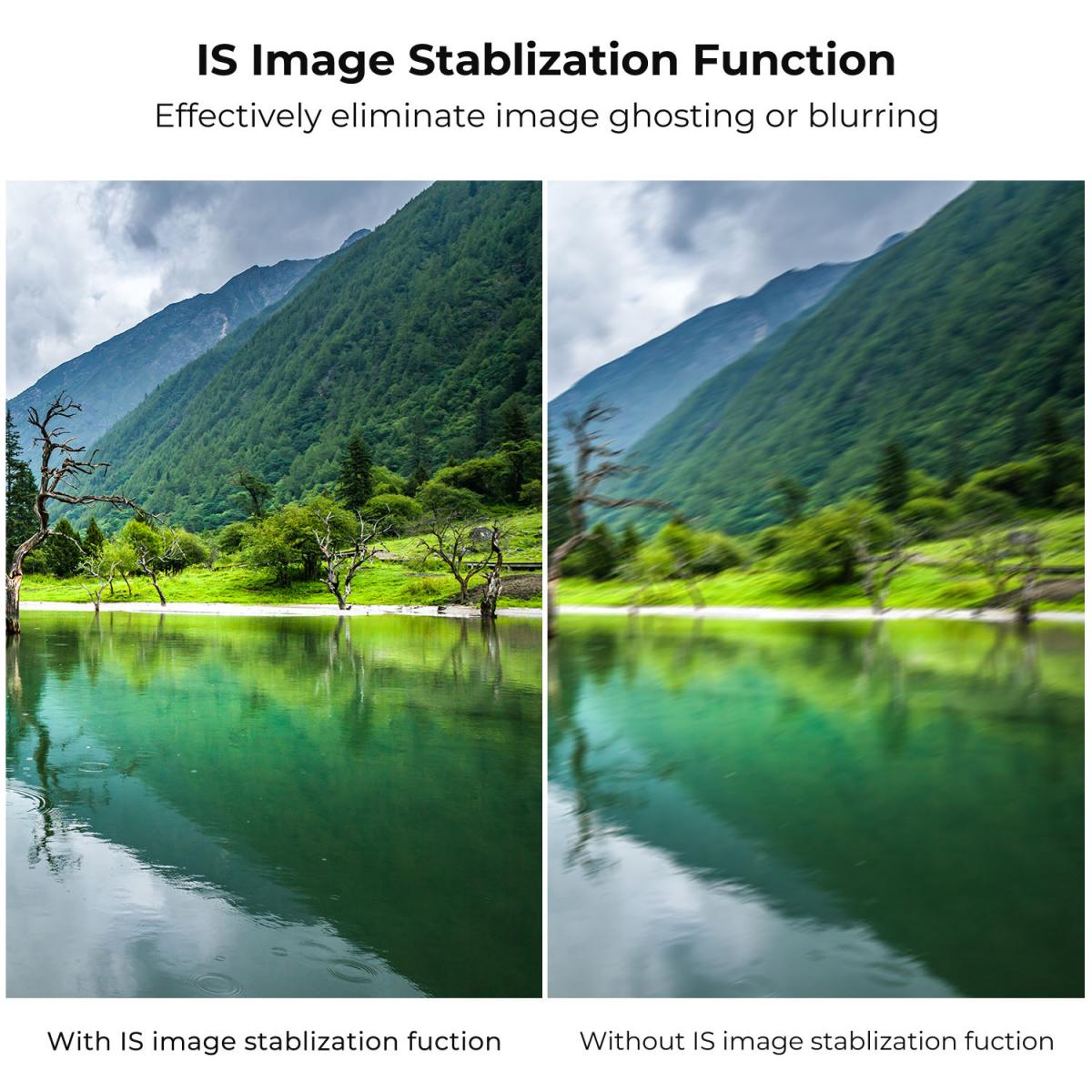 * Estabilizador de imagen avanzado del objetivo. Compatible con IS (estabilizador de imagen), lo que proporciona imágenes más estables y permite a los usuarios obtener imágenes nítidas y estables en condiciones de poca luz.