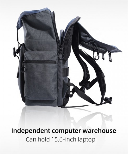 - * Las dos carcasas superior e inferior de material EVA moldeado en el panel frontal son sólidas, duraderas y resistentes a los golpes. Los compartimentos superior e inferior están divididos en cestas: la cesta inferior es para la cámara, la superior es para objetos (ropa, drones, etc.) y la superior es para baterías, tarjetas de memoria y cables de datos. Los compartimentos superior e inferior se pueden separar o conectar entre sí, y el compartimento inferior para el equipo se puede montar a medida.