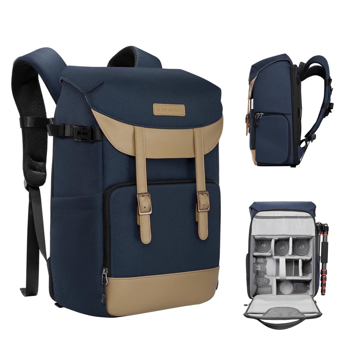 La mochila para cámara K&F Concept 20L Blue es flexible, resistente y ligera, ideal para la fotografía, el senderismo y los viajes. Gracias a su apertura lateral, ofrece un acceso rápido a la cámara u otro equipo cuando necesitas capturar el momento. Tiene capacidad para una cámara con tres objetivos, un trípode y un kit de drones. Esta mochila para cámara, con una capacidad de 20 l y unas dimensiones interiores de 26 x 16 x 28 cm (10" L x 6" An x 11" Al), tiene capacidad para una cámara Canon R5 con un objetivo de 70-200 mm montado, dos objetivos, un kit DJI Mini 3 Pro, baterías, cables, etc. En el bolsillo lateral se puede guardar un trípode o un monopié.