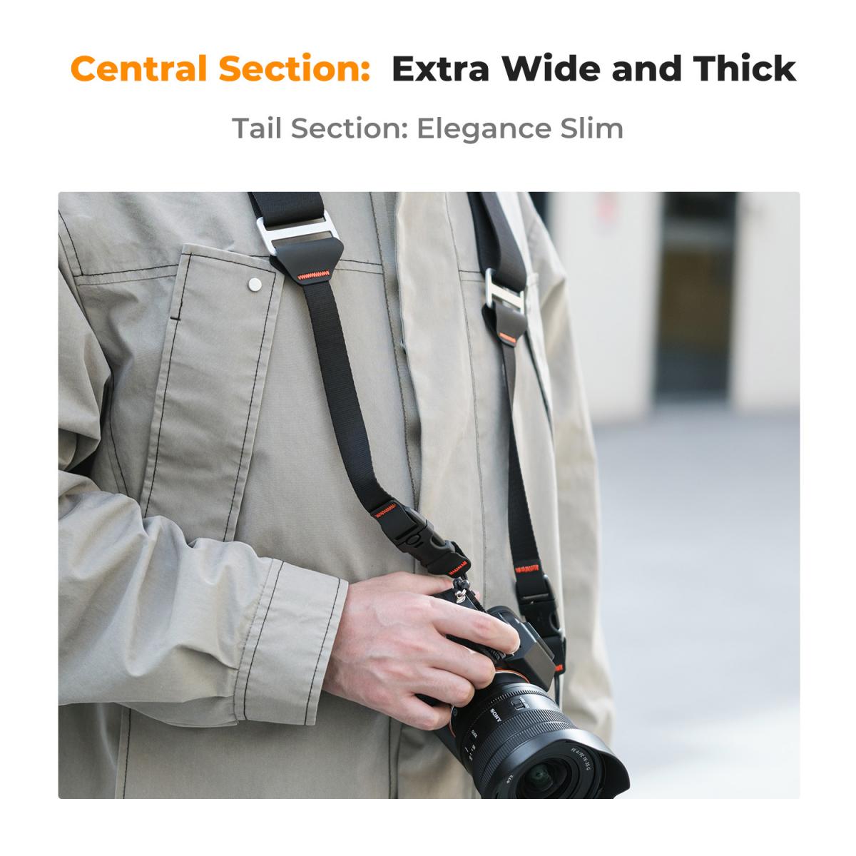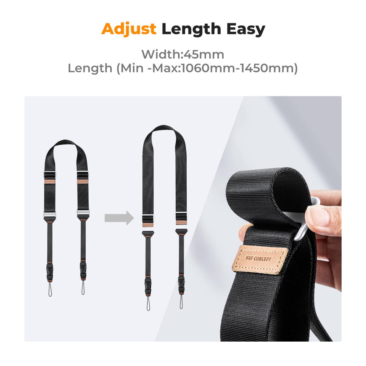Correa para el cuello K&F Concept de 45 mm con cierre rápido para fotógrafos, correa ajustable para llevar la cámara al hombro, compatible con cámaras réflex digitales Nikon, Canon, Sony y Olympus, color negro. El mosquetón de seguridad UTX protege la cámara contra el riesgo de caídas accidentales y aumenta la seguridad.