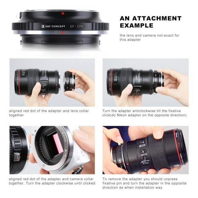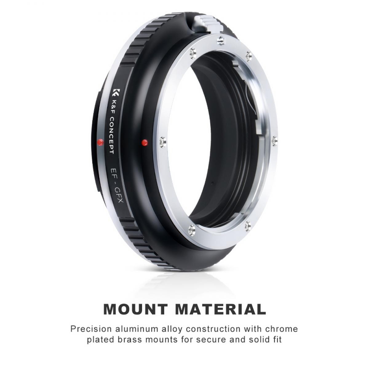 El adaptador K&F para objetivos Canon EOS EF a cámaras Fuji GFX permite a los fotógrafos acoplar objetivos Canon EF a las cámaras de formato medio Fujifilm GFX. Este adaptador es ideal para usuarios que desean aprovechar la amplia gama de objetivos Canon EF y, al mismo tiempo, disfrutar del gran sensor y la alta calidad de imagen del sistema GFX.