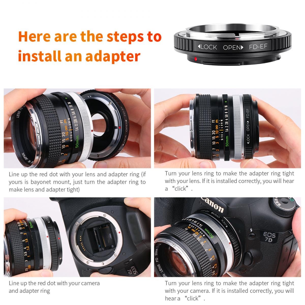 El adaptador K&F Concept de Canon FD a Canon EOS con cristal óptico permite acoplar los objetivos clásicos FD/FL a las modernas cámaras réflex digitales Canon EOS EF/EF-S y ofrece control manual, enfoque continuo y una resistente estructura totalmente metálica.