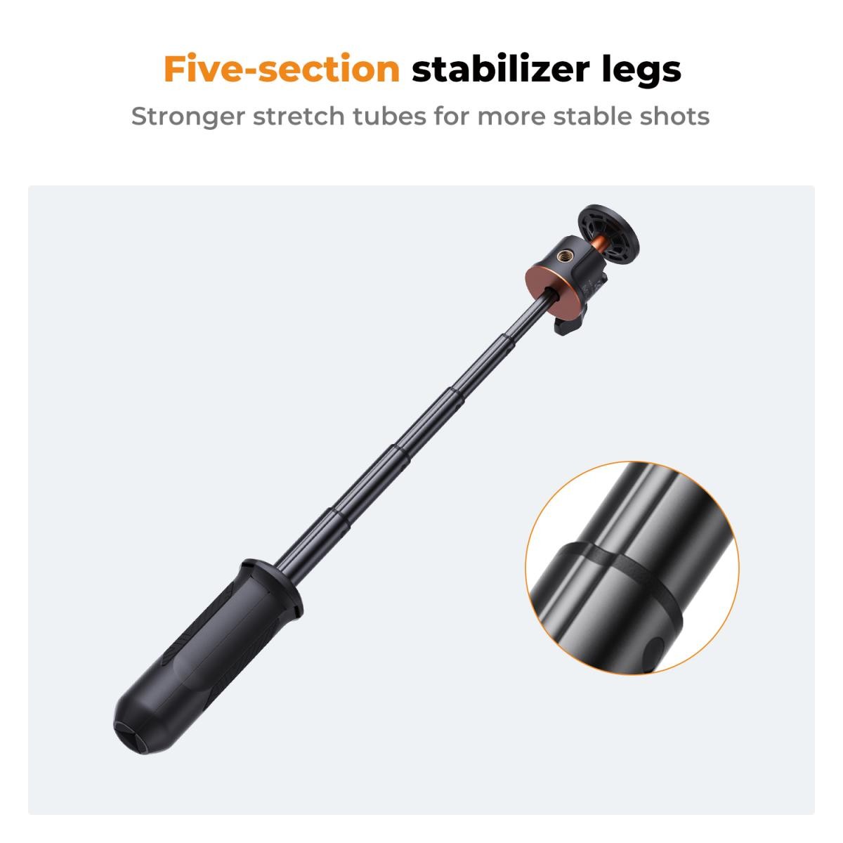 - * En la parte superior hay una interfaz de 1/4 de pulgada que se puede conectar a cualquier dispositivo para que los usuarios puedan fotografiar y apoyar. El tubo ajustado tiene un anillo de goma amortiguador de impactos incorporado, lo que hace que todo el tubo extensible sea más estable y resistente.