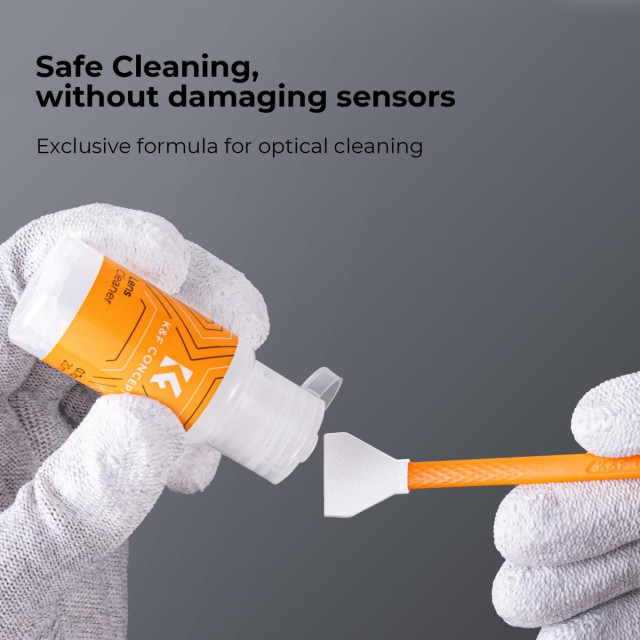 K&F Concept 10Pcs Double-Headed Cleaning Stick + 20ML Cleaning Solution, CMOS APS-C Frame 16mm Cleaning Cloth Sticks Set