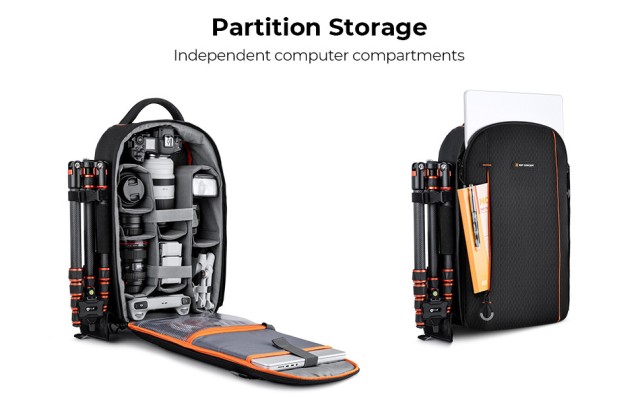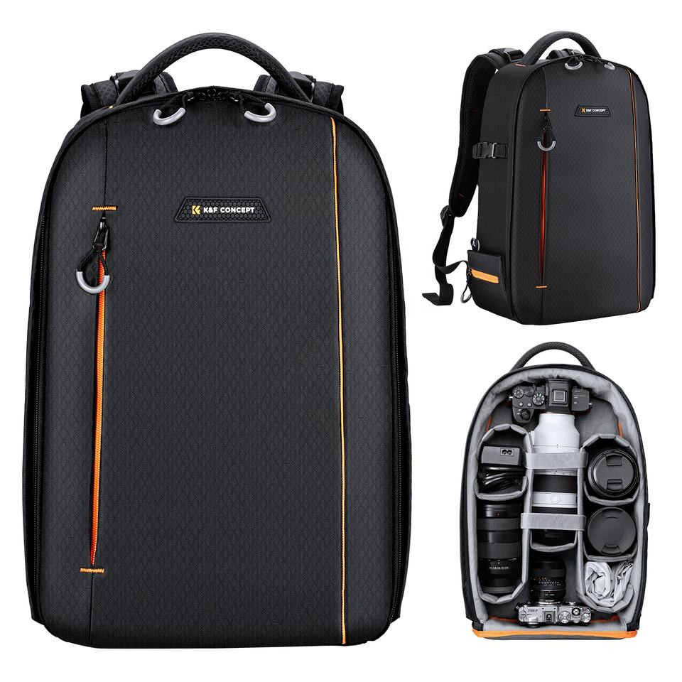 Esta mochila para cámaras réflex digitales K&F Concept KF13.140 15L Beta es una mochila fotográfica de alta calidad con una amplia abertura principal que ofrece numerosas opciones de almacenamiento para cámaras réflex digitales, objetivos, trípodes, flashes, un portátil de 15,6" y otros accesorios.