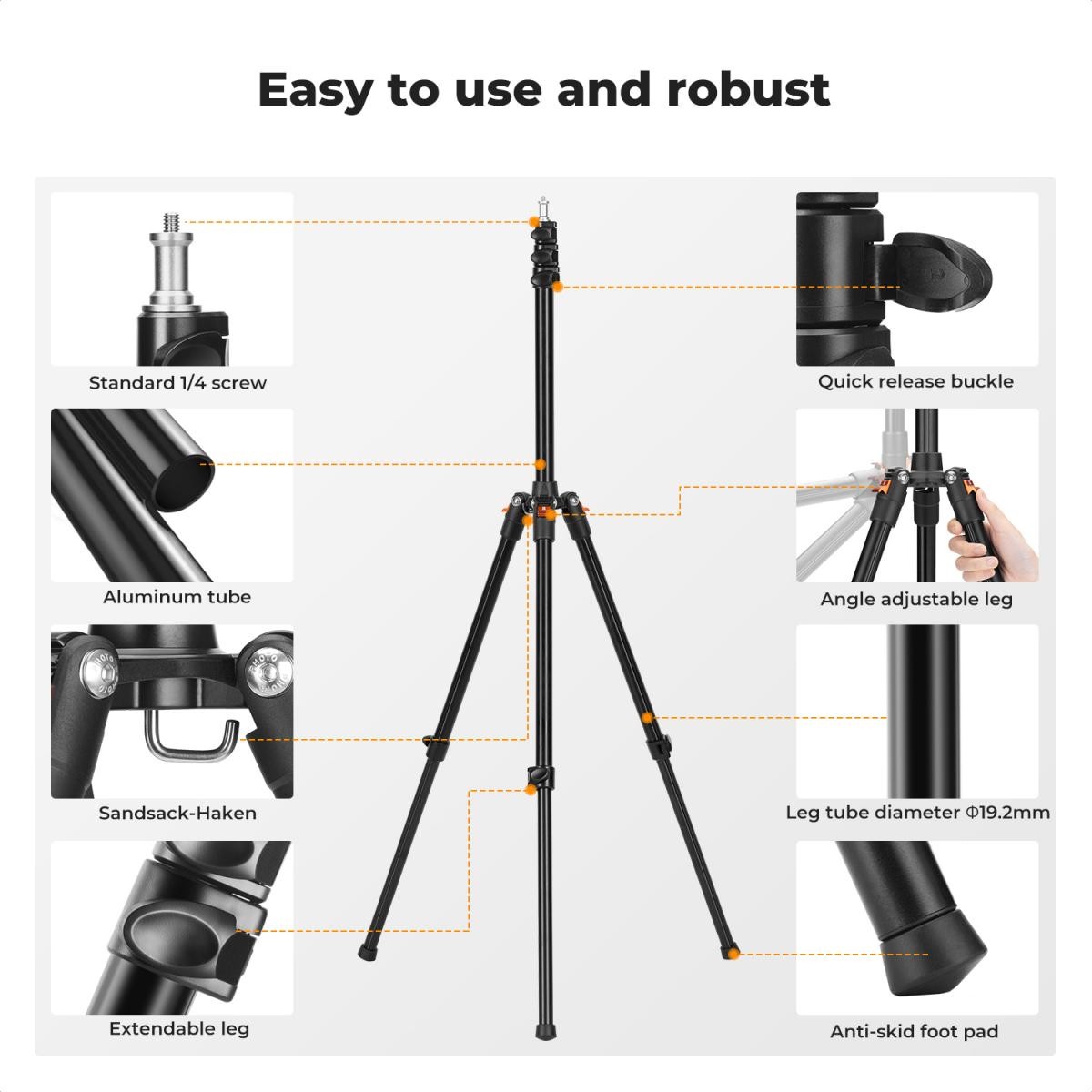 K&F CONCEPT: 2 soportes de iluminación plegables de aluminio de 2,0 m con tornillos de 1/4" y bolsa, para vídeo y luces de estudio. Fabricados en aleación de aluminio ligera, pesan solo 870 g y, una vez plegados, miden 43,2 × 9 cm; caben fácilmente en mochilas o maletas de 20", lo que los hace ideales para viajar y para sesiones fotográficas al aire libre…