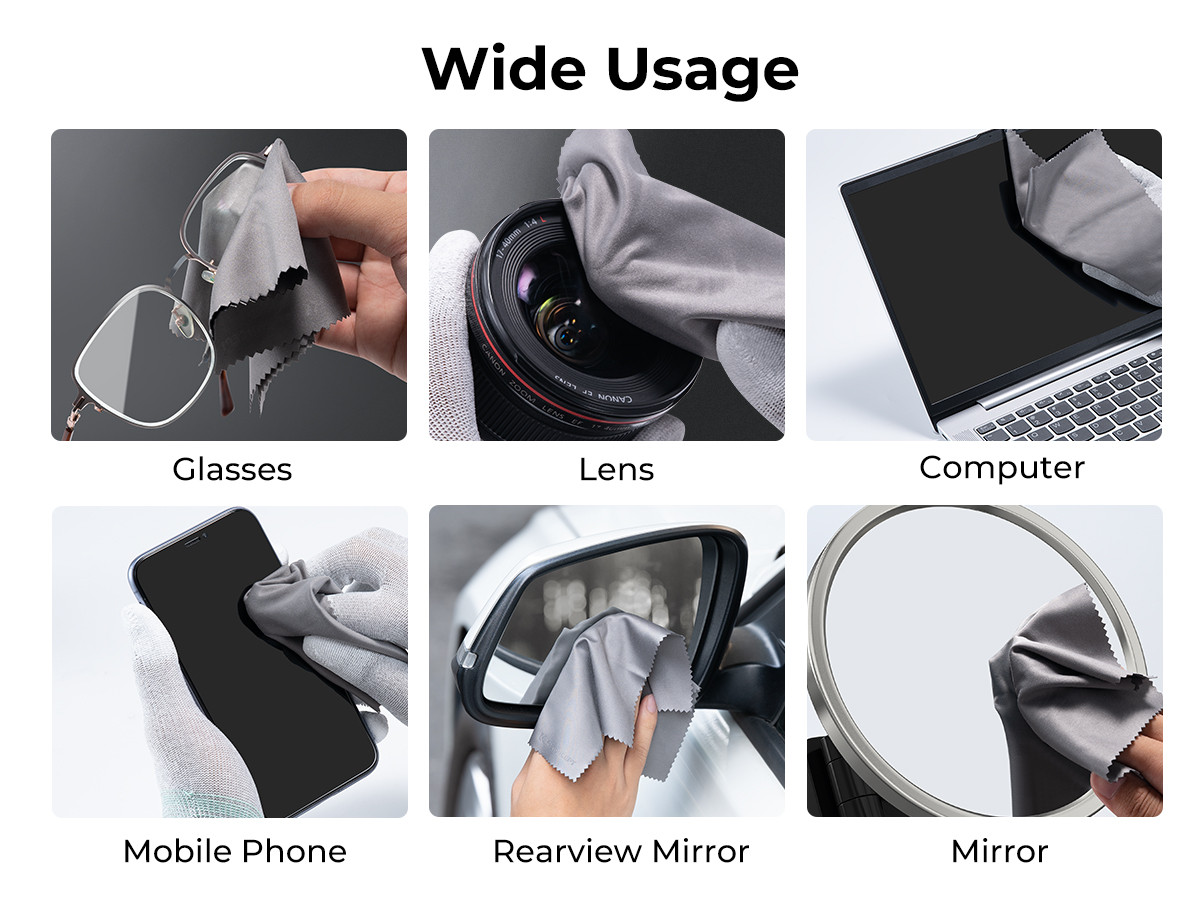 Estos paños están fabricados con microfibras de primera calidad y absorben y eliminan sin esfuerzo huellas dactilares, grasa, polvo y suciedad, garantizando una superficie limpia sin marcas y sin dejar pelusas. Gracias a su tamaño compacto, caben cómodamente en bolsas para cámaras, estuches para gafas o fundas para portátiles, por lo que son ideales para limpiar sobre la marcha.