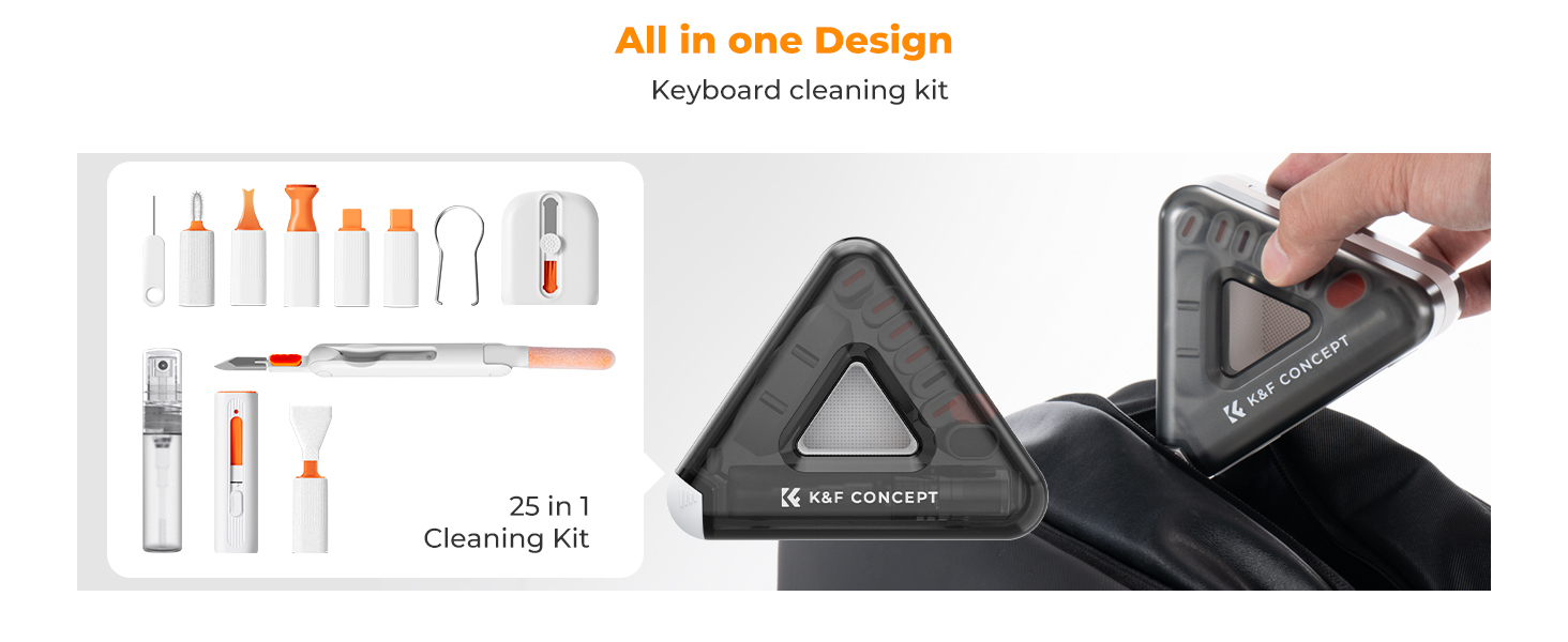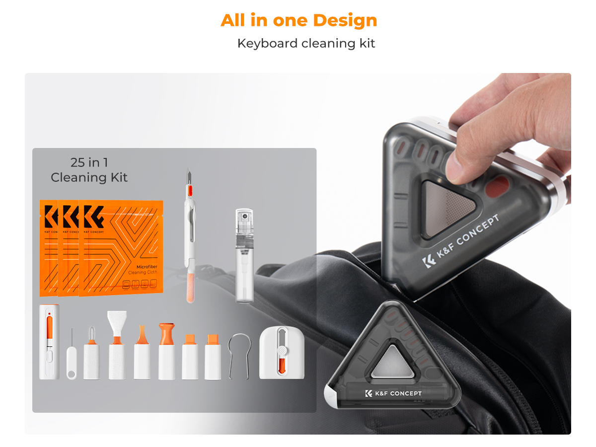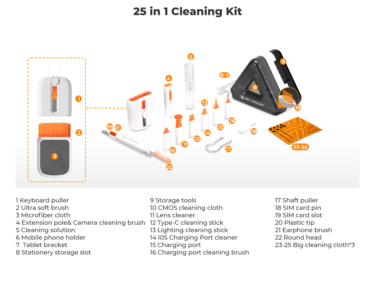 K&F Concept Kit de limpieza para teclado 25 en 1 y limpiador para portátiles: juego multifuncional de accesorios especializados para dispositivos electrónicos, como teléfonos móviles, tabletas, ordenadores, cámaras, teclados y auriculares; soporte para teléfono y tableta