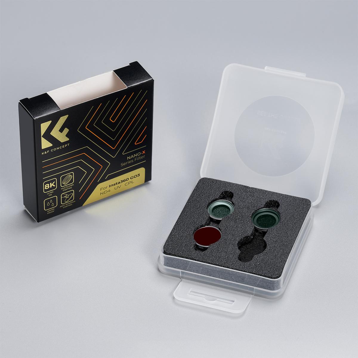 Mejora tus fotos con la cámara Insta360 GO 3 gracias a este juego de filtros, que incluye filtros UV, CPL y ND4 para ofrecerte opciones fotográficas muy versátiles. Estos filtros están fabricados con cristal HD AGC y cuentan con 28 capas multicapa, lo que mejora la calidad de la imagen, reduce los reflejos y protege tu lente, mientras que su fácil instalación garantiza un uso sin complicaciones.
